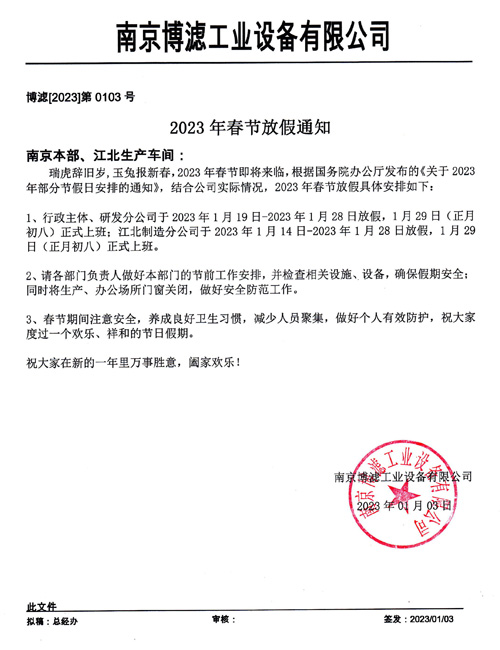 2023年度公司本部及生產(chǎn)車間春節(jié)放假安排通知